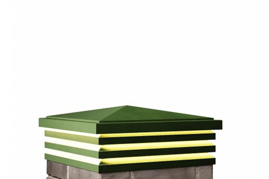 Колпак-жалюзи серии BONA — прежние преимущества композитных колпаков в новой форме. Отлично сочетается с заборами жалюзи, заборами из планкена, ДПК, современными домами в стиле хайтек. Встроенная в жалюзи подсветка с ярким рассеянным светом по контору выразительно подчеркивает архитектуру фасадной части забора. Декоративное решение: Нейтральный свет; Современный дизайн; Полный окрас в массе. Способ крепления: Согласно инструкции на монтажную клей-пену. Посадочный размер: 385×385 мм. Глубина посадки: 25 мм. Вес изделия: 9,2 кг. Встроенный блок питания: Присутствует. Напряжение светодиодной ленты: 12 V. Основное питание: 220 V. Цветовая температура: 3000K. Мощность: 45 Вт. * Погрешность геометрических размеров +/- 2мм Доступные цвета: -коричневый -серый -черный -красный -бежевый -зеленый