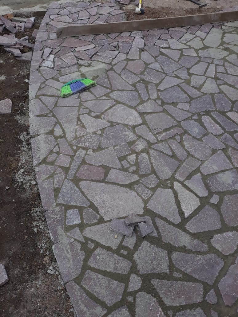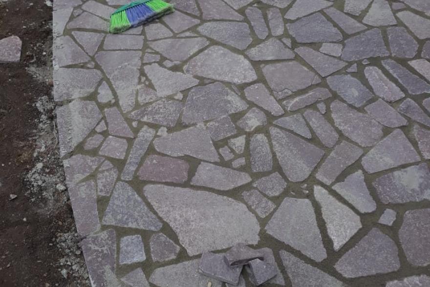 Но в то же время галтованный состаренный лемезит придаст неповторимость и красоту вашей площадке , дорожкам вымощенной данным камнем.