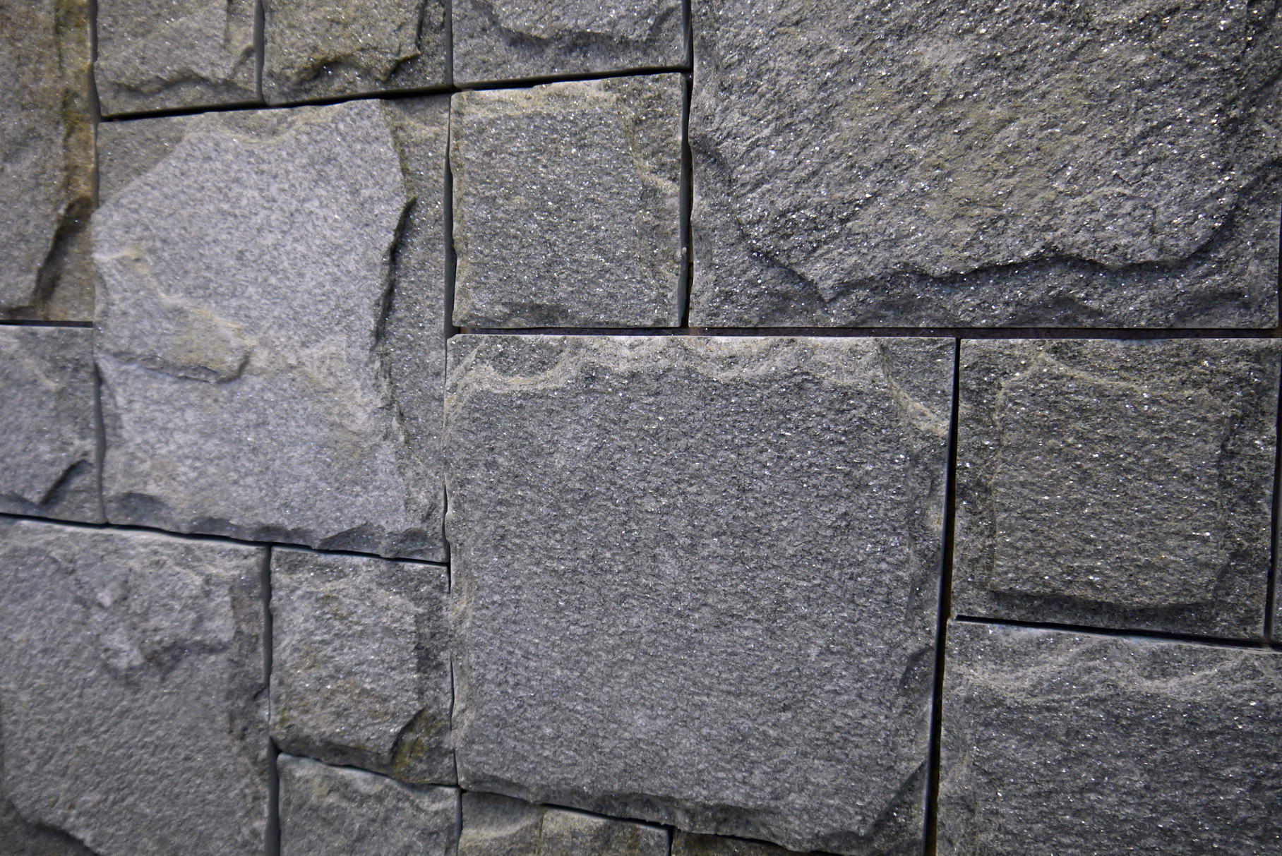 Пиленная плитка из камня породы серебрит, красиво блестящая серебристым переливающимся цветом на солнце.