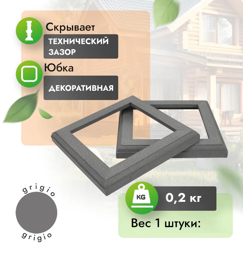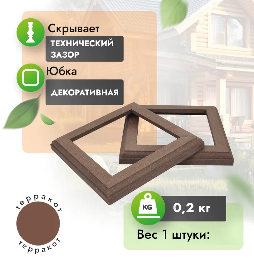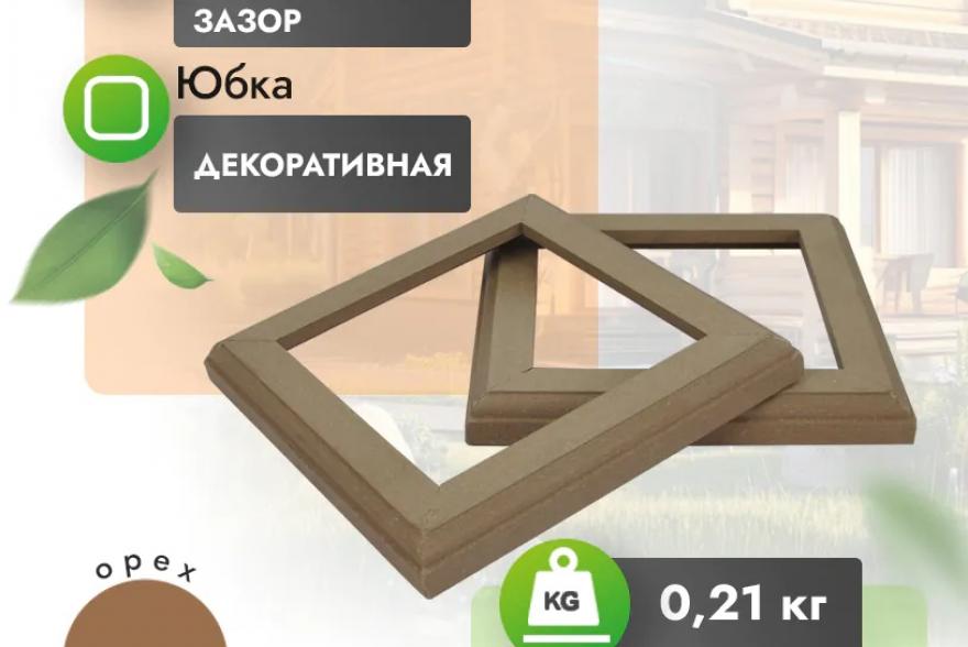 Юбка для столба из ДПК это нижний декоративный элемент в ограждении. Является рекомендуемым элементом, выполняет декоративную функцию, придавая ограждению завершенный вид, гармонично оформляет переход от ограждения к напольному покрытию.