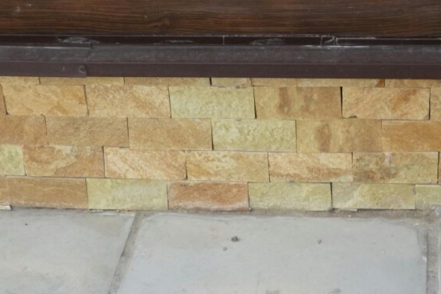 Цокольная плитка из натурального природного камня златолит необычайно красива.