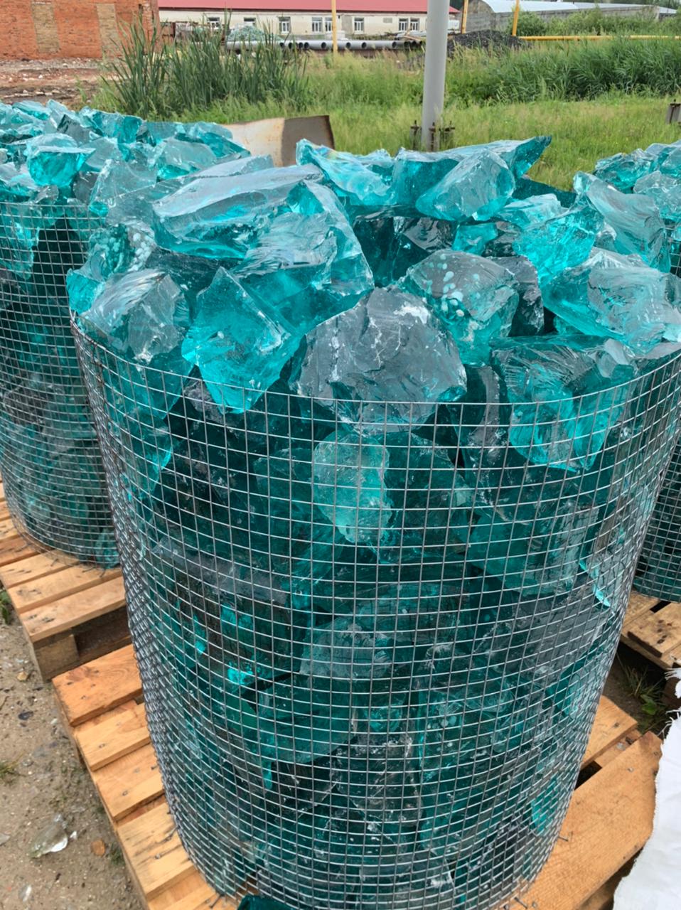 Камни стеклянные - Бирюзовая искра,размер 70-300 мм