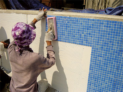 Керамическая мозаика. Используется как для отделки внутренних помещений, так и для фасадов.